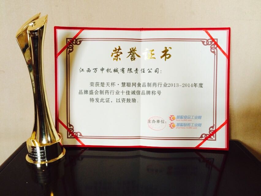 万申包装荣获楚天杯· 慧聪网食品制药行业2013-2014年度品牌盛会制药行业十佳诚信品牌称号。感谢新老客户对万申包装多年的肯定,万申一定会把诚信二字坚持下去。