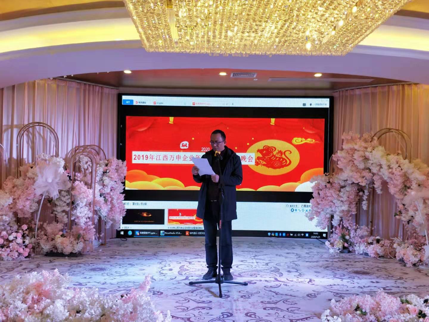 2019年元月21日下午两点半,万申企业新春连环暨表彰年会在港湾龙湖大酒店顺利举行。年会以“向先进学习,不忘初心,不负韶华”为主题,举办了万申企业2020新春联欢会暨颁奖典礼。 年会第一项,周斌如总经理致辞。