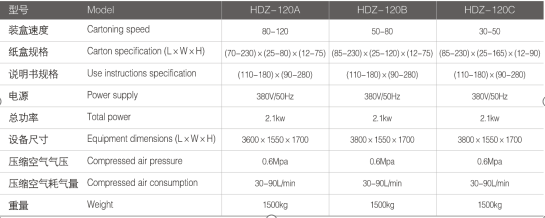 HDZ120多功能装盒机是我公司参考国内外装盒机技术,结合本公司技术研制的新产品,具有体积小,
