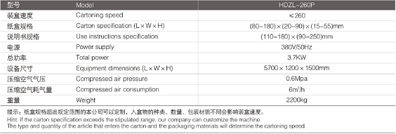 采用人机界面航空操作系统,自动显示装盒速度、数量、故障原因等性能参数,并显示操作保养方法