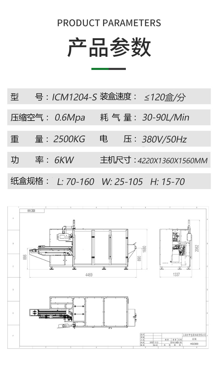 公司首发研制推出具有国内领先水平的HDZ-60B泡罩板型装盒机,填补了国内空白,并取得国家专利证书。在此基础上,又先后开发出HDZ-100、HDZ-150型多功能自动装盒机五个系列,40多个规格的产品。产品符合GMP要求。本设备适用于药品、食品、化妆品、保健品、小轻工产品的自动装盒,已装备了国内外几百个厂家。