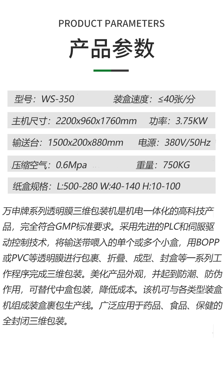 上海万申包装机械有限公司是由江西万申机械有限责任公司于1997年在上海全资注册成立的。万申机械,属国家制药装备行业协会成员企业,中国包装联合会会员单位,是集研发、生产、销售、服务为一体的包装机械专业厂商。公司已通过ISO9001质量体系认证,并具有较强的科技开发能力。